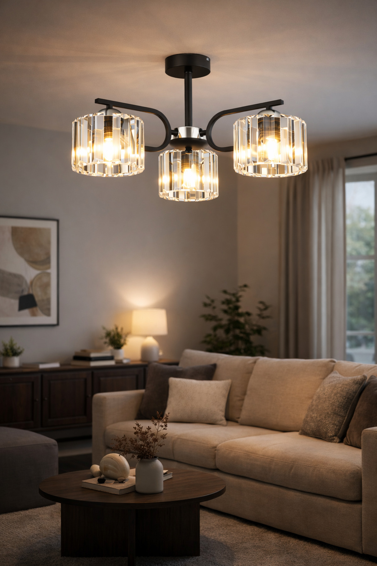 The RIVER 3-piece chandelier, which adds elegance to your living rooms and living rooms with its modern design, offers an eye-catching appearance with its crystal stone details.